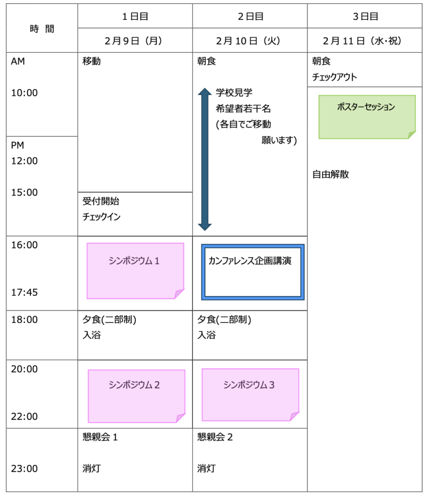 ・部屋の人数によって金額が変わります。参加登録の際に同室者のご希望や部屋タイプをお知らせください。